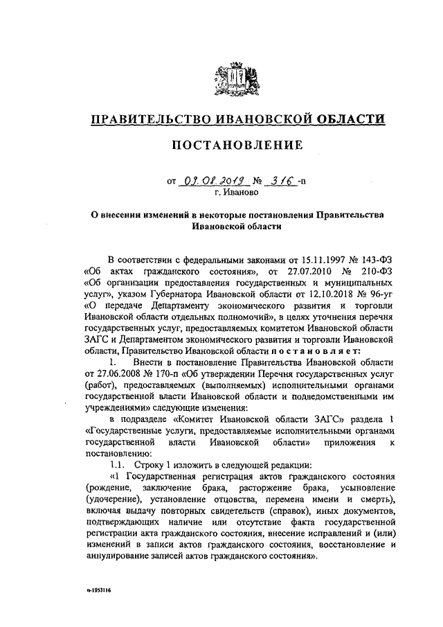 Постановление Правительства Ивановской области от 09.08.2019 N 316-п "О внесении изменений в некоторые постановления Правительства Ивановской области"