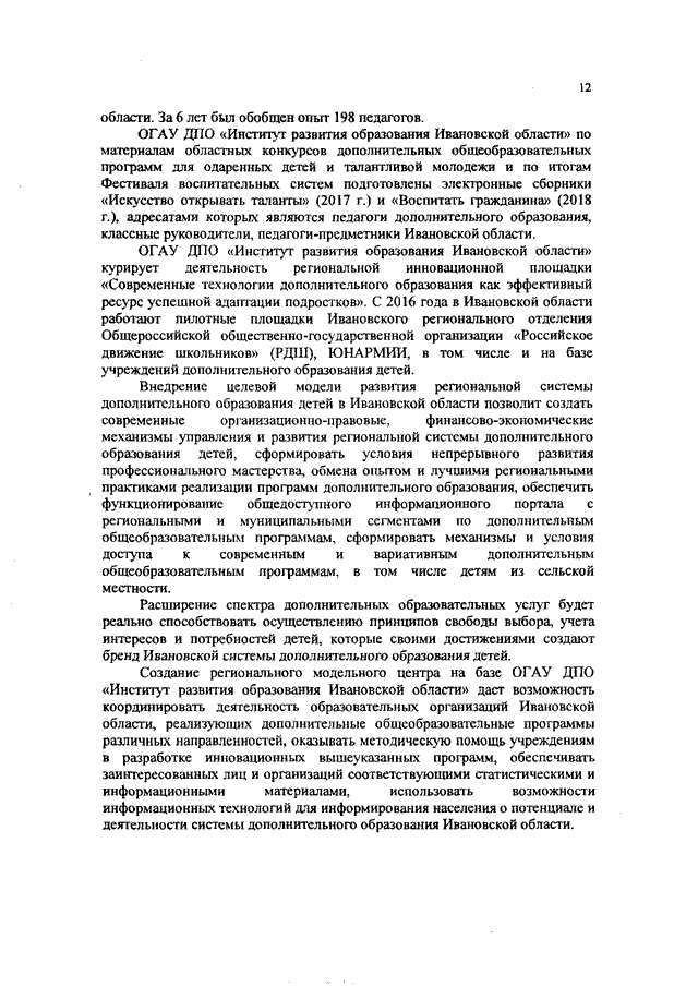Распоряжение Правительства Ивановской области от 15.08.2019 N 127-рп "О Концепции формирования современных управленческих и организационно-экономических механизмов в системе дополнительного образования детей в Ивановской области на 2020 - 2022 годы" (вместе с "Положением о деятельности регионального модельного центра дополнительного образования детей Ивановской области")
