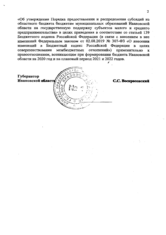 Постановление Правительства Ивановской области от 20.08.2019 N 324-п "О внесении изменения в постановление Правительства Ивановской области от 29.03.2017 N 107-п "Об утверждении Порядка предоставления и распределения субсидий из областного бюджета бюджетам муниципальных образований Ивановской области на государственную поддержку субъектов малого и среднего предпринимательства"