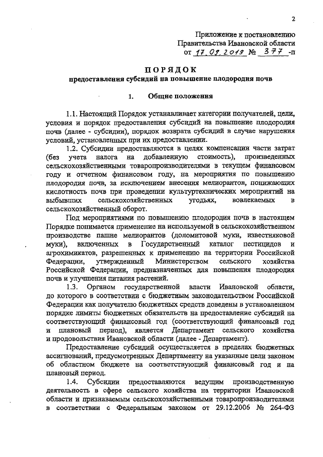 Постановление Правительства Ивановской области от 17.09.2019 N 377-п "Об утверждении Порядка предоставления субсидий на повышение плодородия почв"