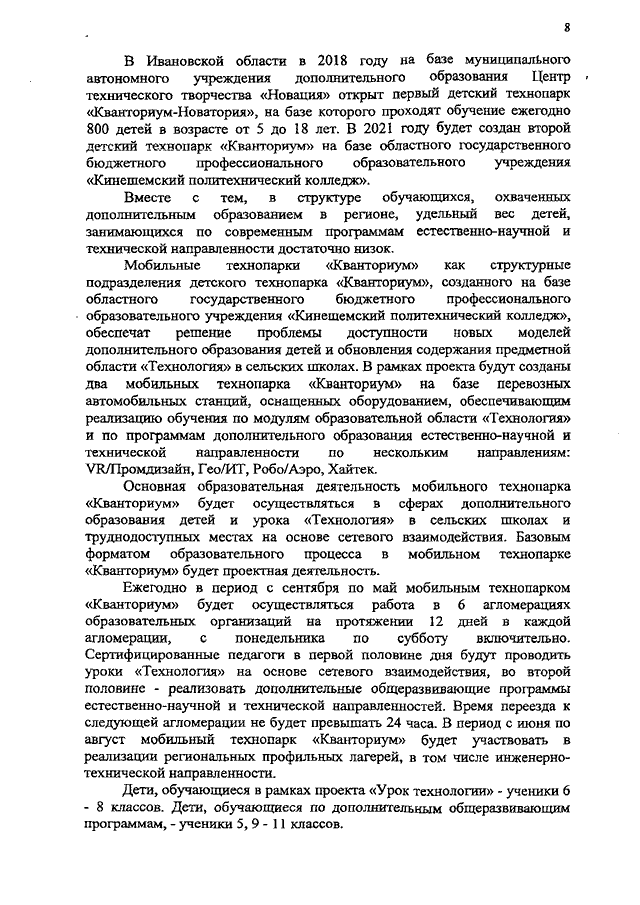 Распоряжение Правительства Ивановской области от 30.09.2019 N 154-рп "О концепции по созданию и функционированию мобильного технопарка "Кванториум" в Ивановской области на 2020 - 2022 годы"