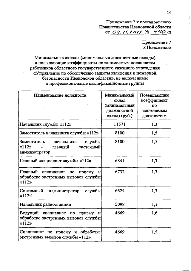 Постановление Правительства Ивановской области от 04.11.2019 N 440-п "О внесении изменений в постановление Правительства Ивановской области от 31.12.2008 N 373-п "О системе оплаты труда работников областного государственного казенного учреждения "Управление по обеспечению защиты населения и пожарной безопасности Ивановской области"