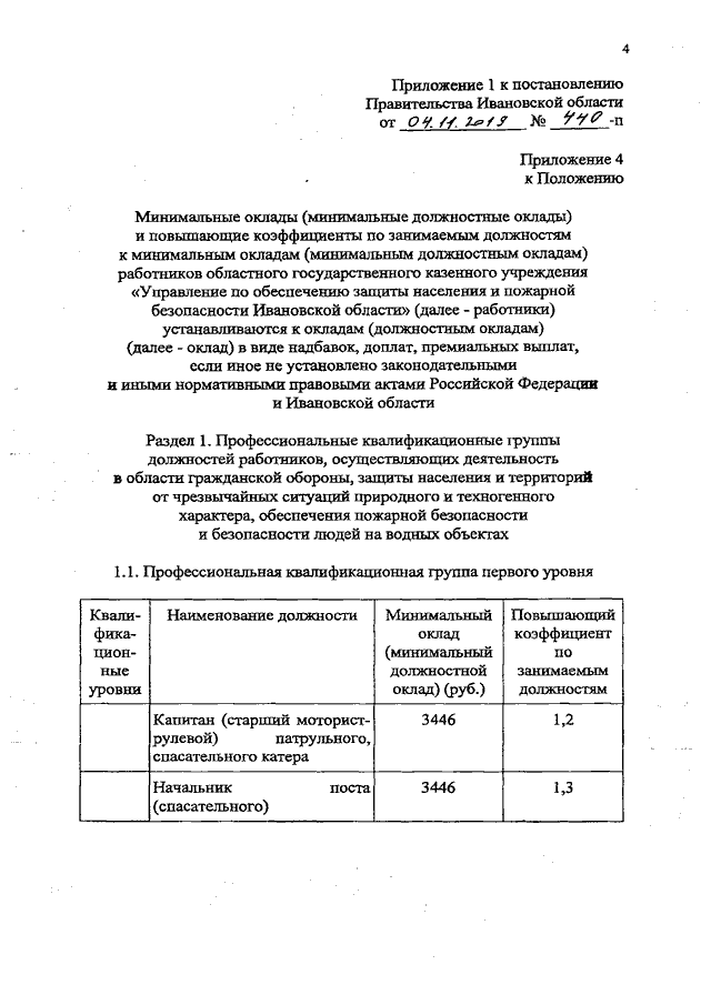 Постановление Правительства Ивановской области от 04.11.2019 N 440-п "О внесении изменений в постановление Правительства Ивановской области от 31.12.2008 N 373-п "О системе оплаты труда работников областного государственного казенного учреждения "Управление по обеспечению защиты населения и пожарной безопасности Ивановской области"