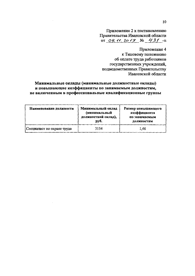 Постановление Правительства Ивановской области от 04.11.2019 N 431-п "О внесении изменений в постановление Правительства Ивановской области от 31.12.2008 N 372-п "О системе оплаты труда работников государственных учреждений, подведомственных Правительству Ивановской области" (вместе с "Перечнем профессиональных квалификационных групп должностей работников государственных учреждений, подведомственных Правительству Ивановской области")