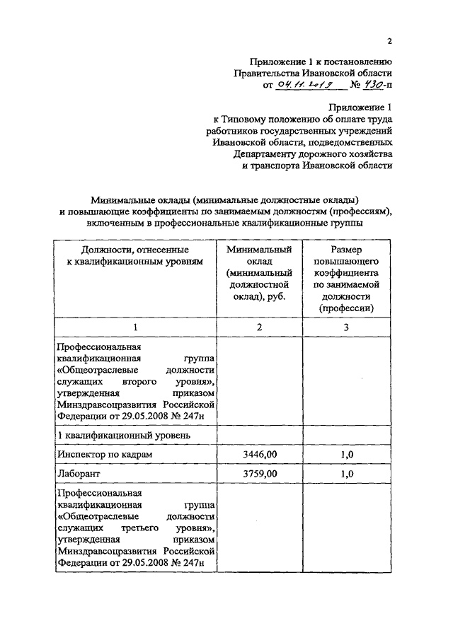 Постановление Правительства Ивановской области от 04.11.2019 N 430-п "О внесении изменений в постановление Правительства Ивановской области от 05.06.2019 N 202-п "О системе оплаты труда работников государственных учреждений Ивановской области, подведомственных Департаменту дорожного хозяйства и транспорта Ивановской области"