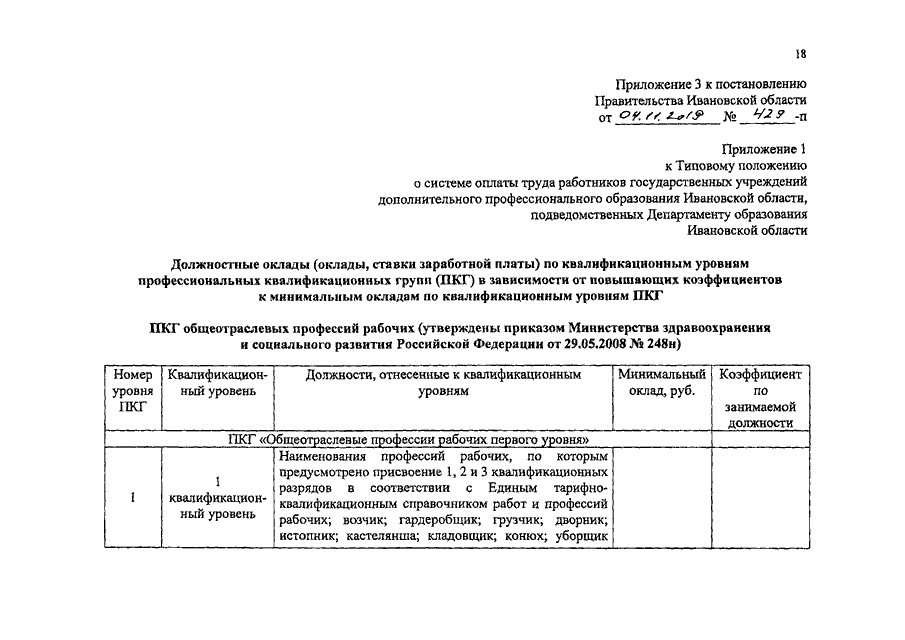 Постановление Правительства Ивановской области от 04.11.2019 N 429-п "О внесении изменений в постановление Правительства Ивановской области от 31.12.2008 N 371-п "О системе оплаты труда работников государственных учреждений Ивановской области, подведомственных Департаменту образования Ивановской области"