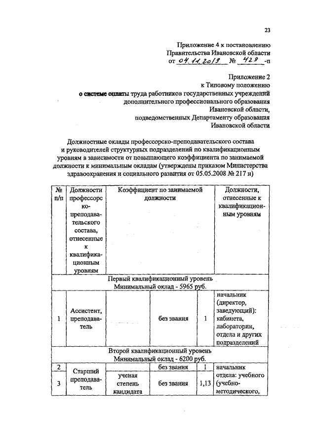 Постановление Правительства Ивановской области от 04.11.2019 N 429-п "О внесении изменений в постановление Правительства Ивановской области от 31.12.2008 N 371-п "О системе оплаты труда работников государственных учреждений Ивановской области, подведомственных Департаменту образования Ивановской области"