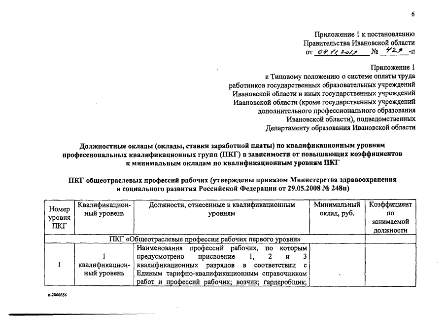 Постановление Правительства Ивановской области от 04.11.2019 N 429-п "О внесении изменений в постановление Правительства Ивановской области от 31.12.2008 N 371-п "О системе оплаты труда работников государственных учреждений Ивановской области, подведомственных Департаменту образования Ивановской области"