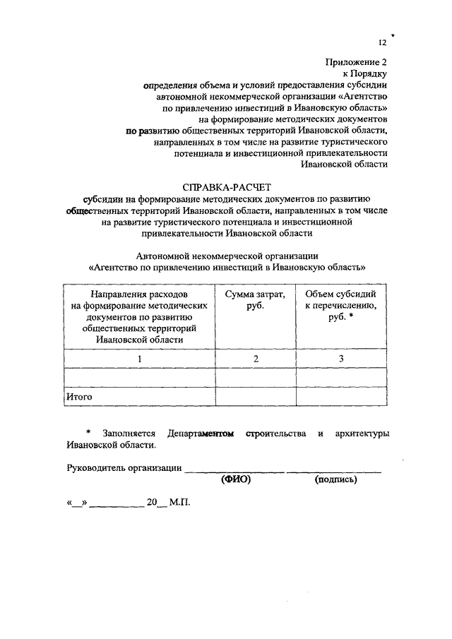Постановление Правительства Ивановской области от 12.11.2019 N 443-п "Об утверждении Порядка определения объема и условий предоставления субсидии автономной некоммерческой организации "Агентство по привлечению инвестиций в Ивановскую область" на формирование методических документов по развитию общественных территорий Ивановской области, направленных в том числе на развитие туристического потенциала и инвестиционной привлекательности Ивановской области"