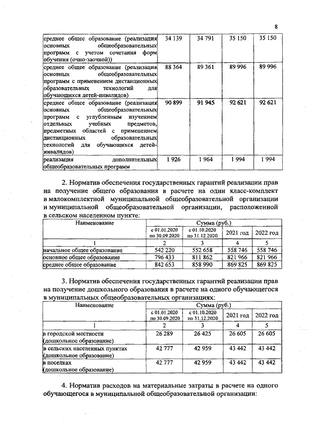 Постановление Правительства Ивановской области от 18.11.2019 N 466-п "Об утверждении нормативов обеспечения государственных гарантий реализации прав на получение общедоступного и бесплатного общего образования, обеспечения дополнительного образования в муниципальных образовательных организациях и возмещения затрат на финансовое обеспечение получения общего образования в частных образовательных организациях на 2020 год и на плановый период 2021 и 2022 годов" (вместе с "Нормативами обеспечения государственных гарантий реализации прав на получение общедоступного и бесплатного дошкольного, начального общего, основного общего, среднего общего образования в муниципальных общеобразовательных организациях, обеспечения дополнительного образования в муниципальных общеобразовательных организациях на 2020 год и на плановый период 2021 и 2022 годов", "Нормативами возмещения затрат на финансовое обеспечение получения дошкольного, начального общего, основного общего, среднего общего образования в частных общеобразовательных организациях, осуществляющих образовательную деятельность по имеющим государственную аккредитацию основным общеобразовательным программам, на 2020 год и на плановый период 2021 и 2022 годов", "Нормативами обеспечения государственных гарантий реализации прав на получение общедоступного и бесплатного дошкольного образования в муниципальных дошкольных образовательных организациях на 2020 год и на плановый период 2021 и 2022 годов", "Нормативами возмещения затрат на финансовое обеспечение получения дошкольного образования в частных дошкольных образовательных организациях на 2020 год и на плановый период 2021 и 2022 годов", "Перечнем малокомплектных муниципальных общеобразовательных организаций, для которых применяется норматив финансового обеспечения, учитывающий затраты, не зависящие от количества обучающихся, для расчета субвенций местным бюджетам в размере, необходимом для реализации основных общеобразовательных программ в части финансирования расходов на оплату труда работников общеобразовательных организаций, расходов на учебники, учебные пособия, средства обучения, игры, игрушки (за исключением расходов на содержание зданий и оплату коммунальных услуг, осуществляемых из местных бюджетов)")