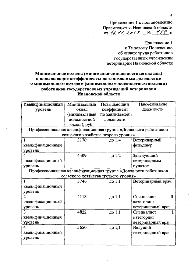 Постановление Правительства Ивановской области от 18.11.2019 N 450-п "О внесении изменений в постановление Правительства Ивановской области от 31.12.2008 N 374-п "О системе оплаты труда работников государственных учреждений ветеринарии Ивановской области"
