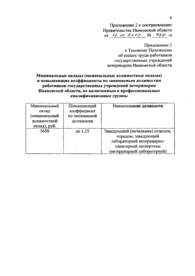 Постановление Правительства Ивановской области от 18.11.2019 N 450-п "О внесении изменений в постановление Правительства Ивановской области от 31.12.2008 N 374-п "О системе оплаты труда работников государственных учреждений ветеринарии Ивановской области"