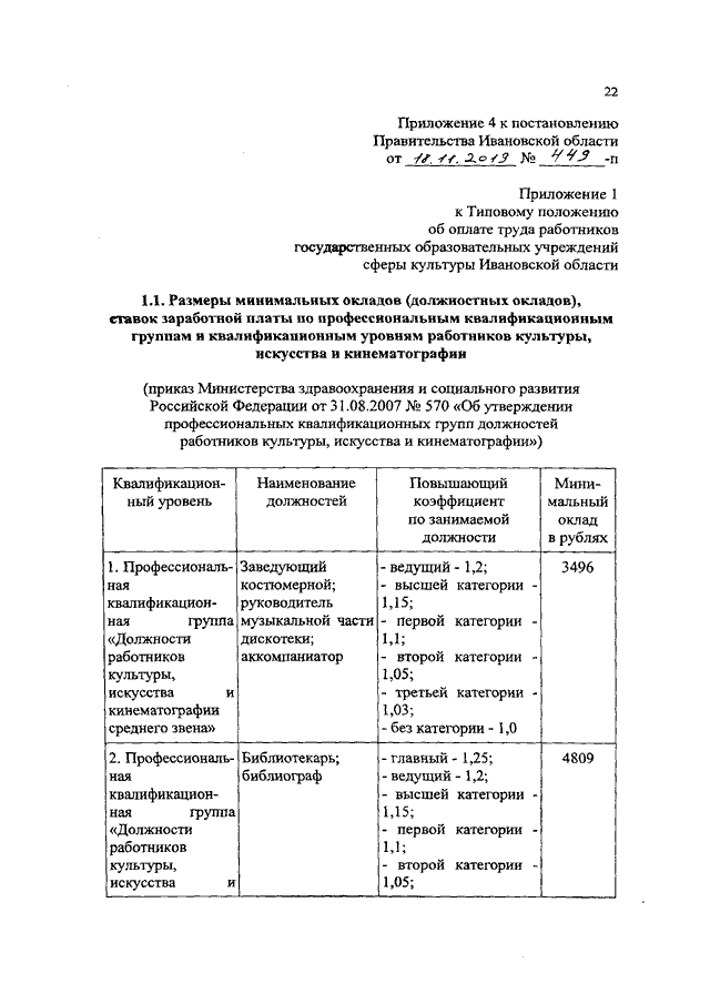 Постановление Правительства Ивановской области от 18.11.2019 N 449-п "О внесении изменений в постановление Правительства Ивановской области от 31.12.2008 N 367-п "О системе оплаты труда работников государственных учреждений Ивановской области, подведомственных Департаменту культуры и туризма Ивановской области"