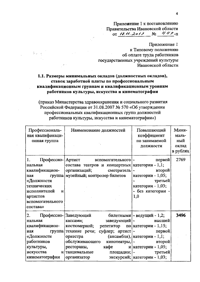 Постановление Правительства Ивановской области от 18.11.2019 N 449-п "О внесении изменений в постановление Правительства Ивановской области от 31.12.2008 N 367-п "О системе оплаты труда работников государственных учреждений Ивановской области, подведомственных Департаменту культуры и туризма Ивановской области"