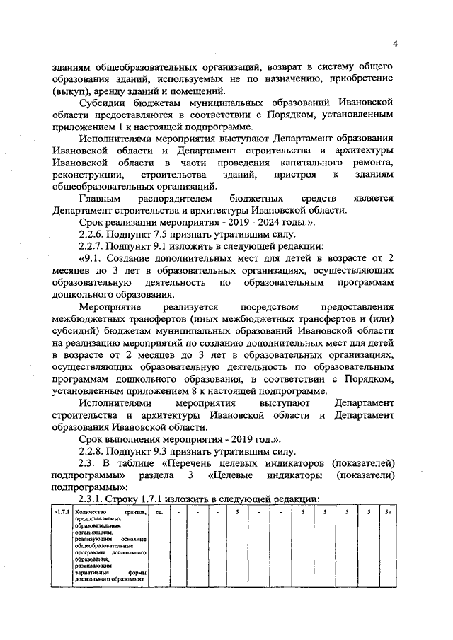 Постановление Правительства Ивановской области от 18.11.2019 N 446-п "О внесении изменений в постановление Правительства Ивановской области от 13.11.2013 N 450-п "Об утверждении государственной программы "Развитие образования Ивановской области" (вместе с "Порядком предоставления и распределения межбюджетных трансфертов (иных межбюджетных трансфертов и (или) субсидий) бюджетам муниципальных образований Ивановской области на реализацию мероприятий по созданию дополнительных мест для детей в возрасте от 2 месяцев до 3 лет в образовательных организациях, осуществляющих образовательную деятельность по образовательным программам дошкольного образования")