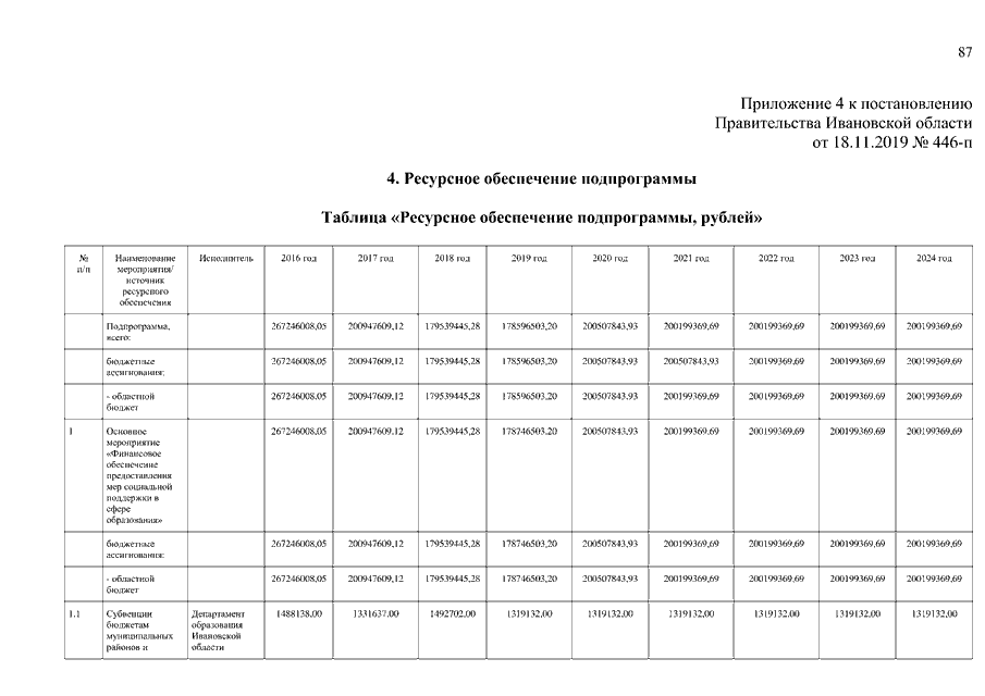 Постановление Правительства Ивановской области от 18.11.2019 N 446-п "О внесении изменений в постановление Правительства Ивановской области от 13.11.2013 N 450-п "Об утверждении государственной программы "Развитие образования Ивановской области" (вместе с "Порядком предоставления и распределения межбюджетных трансфертов (иных межбюджетных трансфертов и (или) субсидий) бюджетам муниципальных образований Ивановской области на реализацию мероприятий по созданию дополнительных мест для детей в возрасте от 2 месяцев до 3 лет в образовательных организациях, осуществляющих образовательную деятельность по образовательным программам дошкольного образования")