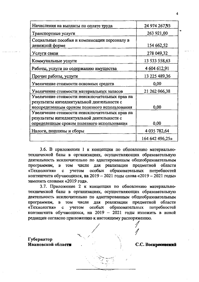 Распоряжение Правительства Ивановской области от 21.11.2019 N 176-рп "О внесении изменений в распоряжение Правительства Ивановской области от 31.10.2018 N 125-рп "Об утверждении комплекса мер по обновлению материально-технической базы в организациях, осуществляющих образовательную деятельность исключительно по адаптированным общеобразовательным программам, на 2019 - 2021 годы"