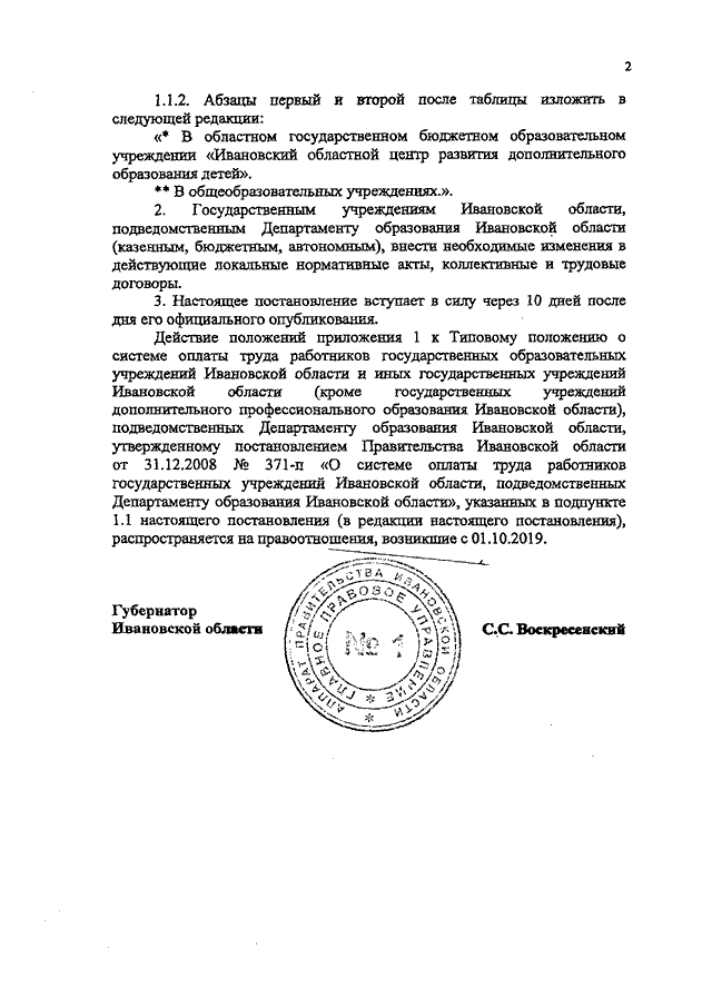 Постановление Правительства Ивановской области от 05.12.2019 N 485-п "О внесении изменений в постановление Правительства Ивановской области от 31.12.2008 N 371-п "О системе оплаты труда работников государственных учреждений Ивановской области, подведомственных Департаменту образования Ивановской области"