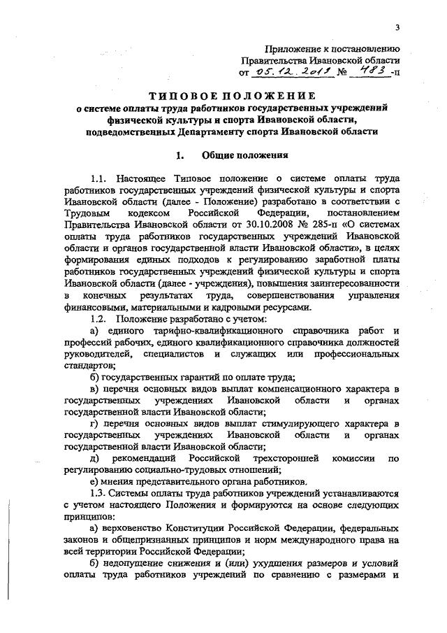 Постановление Правительства Ивановской области от 05.12.2019 N 483-п "О системе оплаты труда работников государственных учреждений физической культуры и спорта Ивановской области, подведомственных Департаменту спорта Ивановской области" (вместе с "Типовым положением о системе оплаты труда работников государственных учреждений физической культуры и спорта Ивановской области, подведомственных Департаменту спорта Ивановской области")