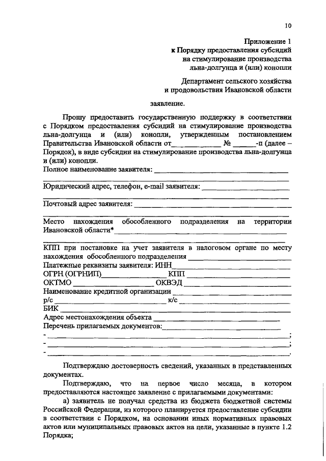 Постановление Правительства Ивановской области от 16.12.2019 N 518-п "Об утверждении Порядка предоставления субсидий на стимулирование производства льна-долгунца и (или) конопли"