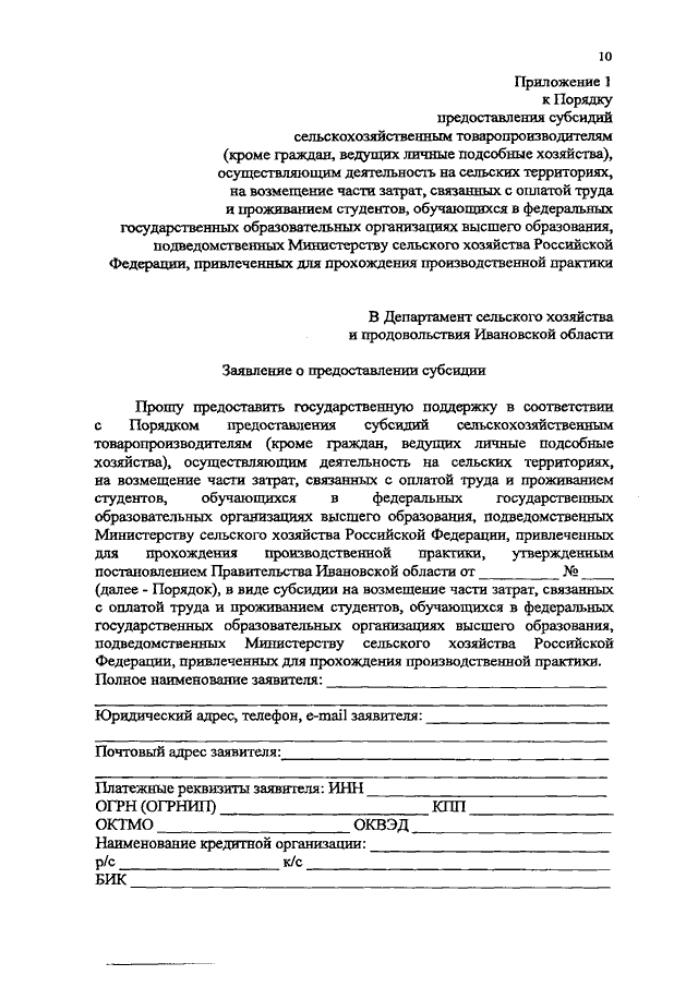 Постановление Правительства Ивановской области от 16.12.2019 N 513-п "Об утверждении Порядка предоставления субсидий сельскохозяйственным товаропроизводителям (кроме граждан, ведущих личные подсобные хозяйства), осуществляющим деятельность на сельских территориях, на возмещение части затрат, связанных с оплатой труда и проживанием студентов, обучающихся в федеральных государственных образовательных организациях высшего образования, подведомственных Министерству сельского хозяйства Российской Федерации, привлеченных для прохождения производственной практики"