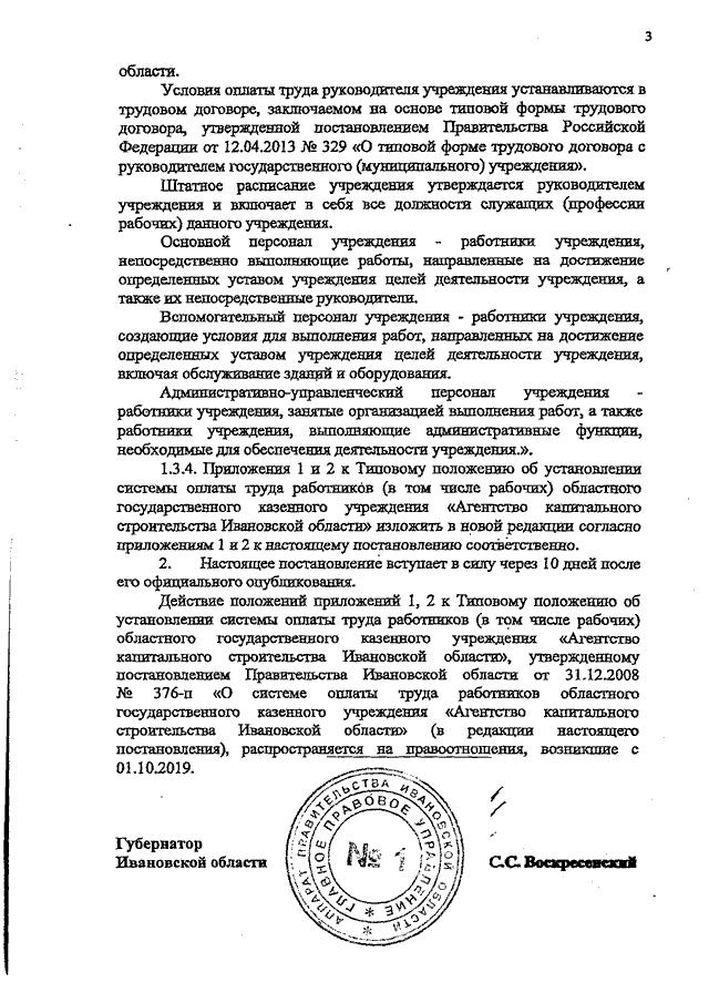 Постановление Правительства Ивановской области от 16.12.2019 N 511-п "О внесении изменений в постановление Правительства Ивановской области от 31.12.2008 N 376-п "О системе оплаты труда работников областного государственного казенного учреждения "Агентство капитального строительства Ивановской области"