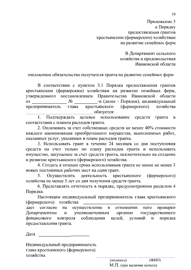 Постановление Правительства Ивановской области от 16.12.2019 N 522-п "Об утверждении Порядка предоставления грантов крестьянским (фермерским) хозяйствам на развитие семейных ферм"