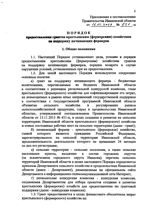 Постановление Правительства Ивановской области от 16.12.2019 N 521-п "Об утверждении Порядка предоставления грантов крестьянским (фермерским) хозяйствам на поддержку начинающих фермеров"