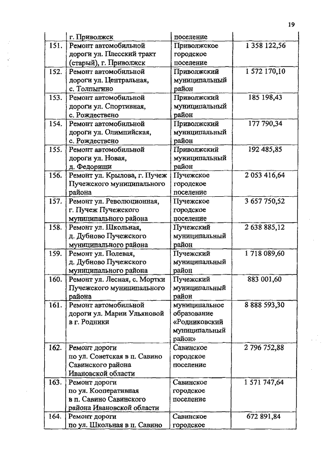Постановление Правительства Ивановской области от 19.12.2019 N 535-п "О внесении изменения в постановление Правительства Ивановской области от 25.02.2019 N 52-п "Об утверждении перечня мероприятий, софинансируемых за счет субсидий бюджетам муниципальных образований на строительство (реконструкцию), капитальный ремонт, ремонт и содержание автомобильных дорог общего пользования местного значения, в том числе на формирование муниципальных дорожных фондов Ивановской области, в 2019 году"