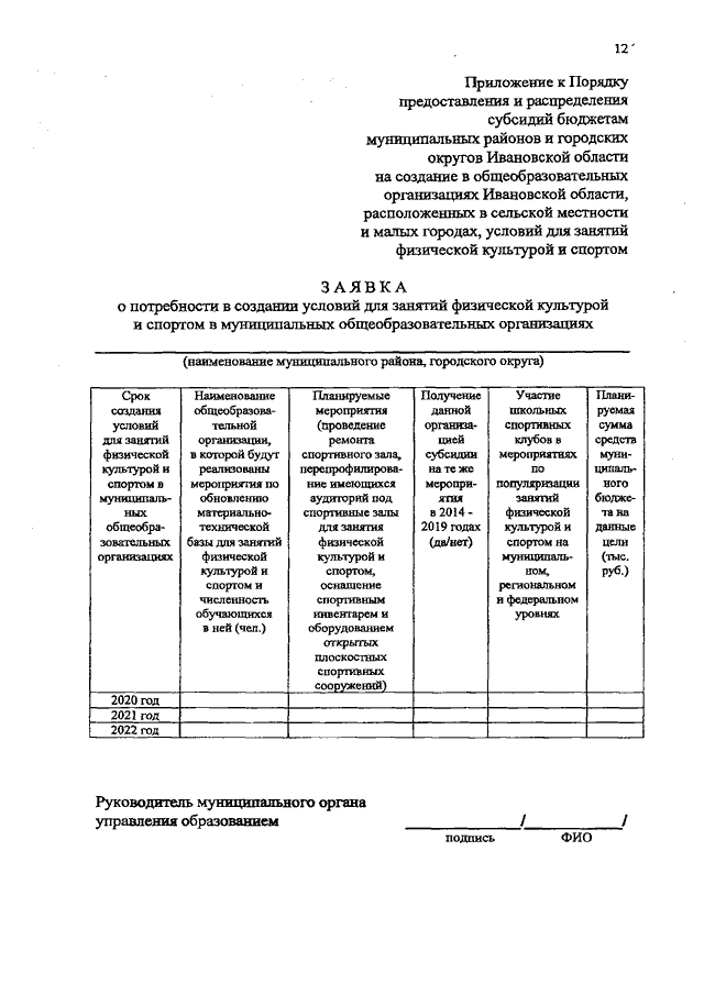 Постановление Правительства Ивановской области от 19.12.2019 N 546-п "О внесении изменений в постановление Правительства Ивановской области от 30.05.2014 N 204-п "Об утверждении комплекса мероприятий по созданию в общеобразовательных организациях Ивановской области, расположенных в сельской местности, условий для занятий физической культурой и спортом и Порядка предоставления и распределения субсидий бюджетам муниципальных районов Ивановской области на создание в общеобразовательных организациях Ивановской области, расположенных в сельской местности, условий для занятий физической культурой и спортом" (вместе с "Порядком предоставления и распределения субсидий бюджетам муниципальных районов и городских округов Ивановской области на создание в общеобразовательных организациях Ивановской области, расположенных в сельской местности и малых городах, условий для занятий физической культурой и спортом", "Перечнем мероприятий по созданию в общеобразовательных организациях Ивановской области, расположенных в сельской местности и малых городах, условий для занятий физической культурой и спортом в 2020 - 2022 годах")