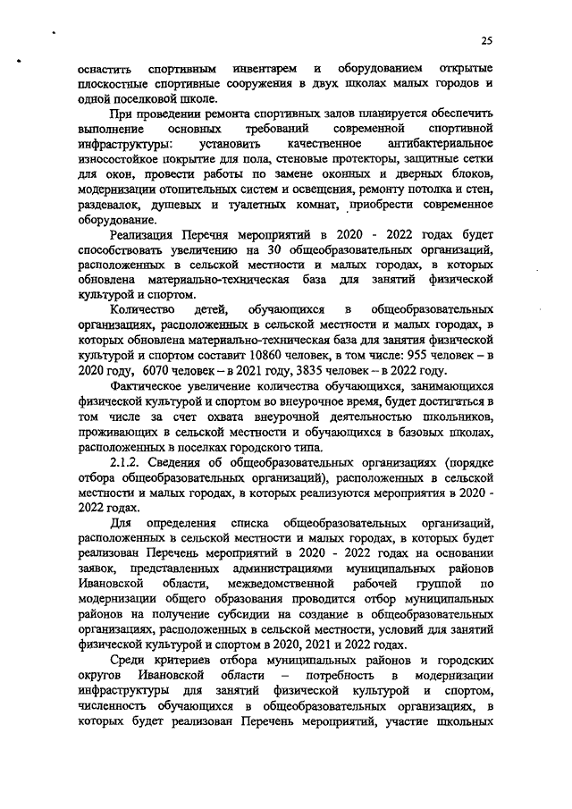 Постановление Правительства Ивановской области от 19.12.2019 N 546-п "О внесении изменений в постановление Правительства Ивановской области от 30.05.2014 N 204-п "Об утверждении комплекса мероприятий по созданию в общеобразовательных организациях Ивановской области, расположенных в сельской местности, условий для занятий физической культурой и спортом и Порядка предоставления и распределения субсидий бюджетам муниципальных районов Ивановской области на создание в общеобразовательных организациях Ивановской области, расположенных в сельской местности, условий для занятий физической культурой и спортом" (вместе с "Порядком предоставления и распределения субсидий бюджетам муниципальных районов и городских округов Ивановской области на создание в общеобразовательных организациях Ивановской области, расположенных в сельской местности и малых городах, условий для занятий физической культурой и спортом", "Перечнем мероприятий по созданию в общеобразовательных организациях Ивановской области, расположенных в сельской местности и малых городах, условий для занятий физической культурой и спортом в 2020 - 2022 годах")