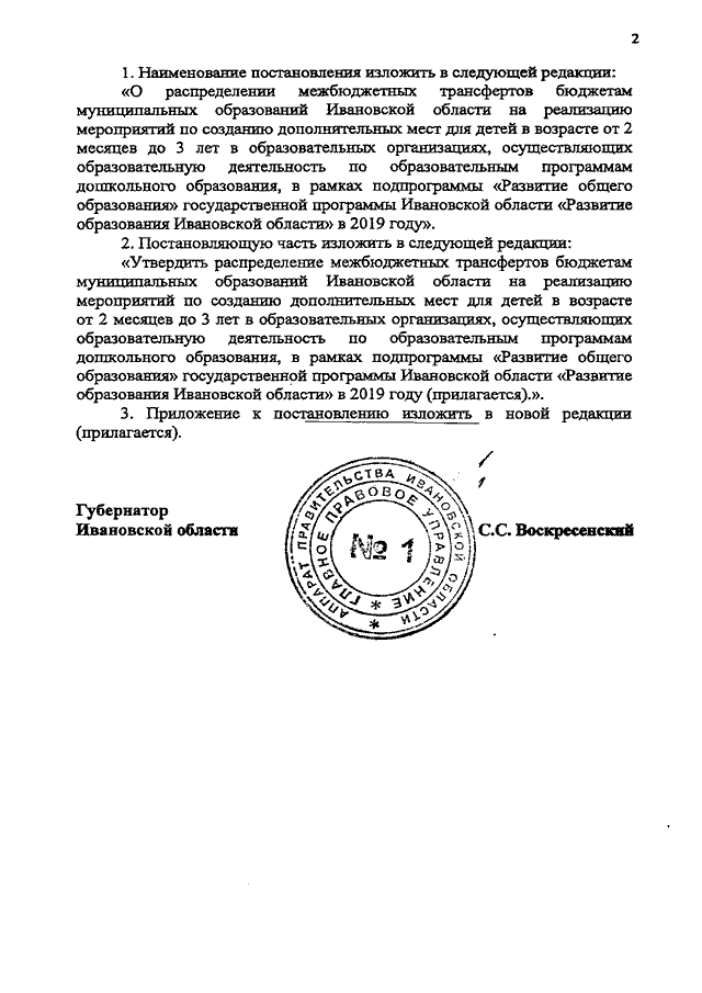 Постановление Правительства Ивановской области от 19.12.2019 N 527-п "О внесении изменений в постановление Правительства Ивановской области от 12.11.2018 N 318-п "О распределении иных межбюджетных трансфертов и субсидий бюджетам муниципальных образований Ивановской области на реализацию мероприятий по созданию дополнительных мест для детей в возрасте от 2 месяцев до 3 лет в образовательных организациях, осуществляющих образовательную деятельность по образовательным программам дошкольного образования, на строительство зданий (пристроек к зданиям), приобретение (выкуп) зданий (пристроек к зданиям) и помещений для размещения дошкольных организаций в рамках подпрограммы "Развитие общего образования" государственной программы Ивановской области "Развитие образования Ивановской области" в 2019 году"