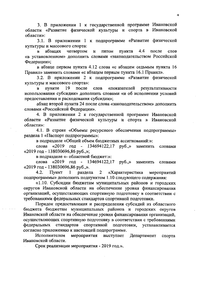 Постановление Правительства Ивановской области от 23.12.2019 N 548-п "О внесении изменений в постановление Правительства Ивановской области от 18.02.2016 N 43-п "Об утверждении государственной программы Ивановской области "Развитие физической культуры и спорта в Ивановской области" (вместе с "Порядком предоставления и распределения субсидий из областного бюджета бюджетам муниципальных районов и городских округов Ивановской области на обеспечение уровня финансирования организаций, осуществляющих спортивную подготовку в соответствии с требованиями федеральных стандартов спортивной подготовки")