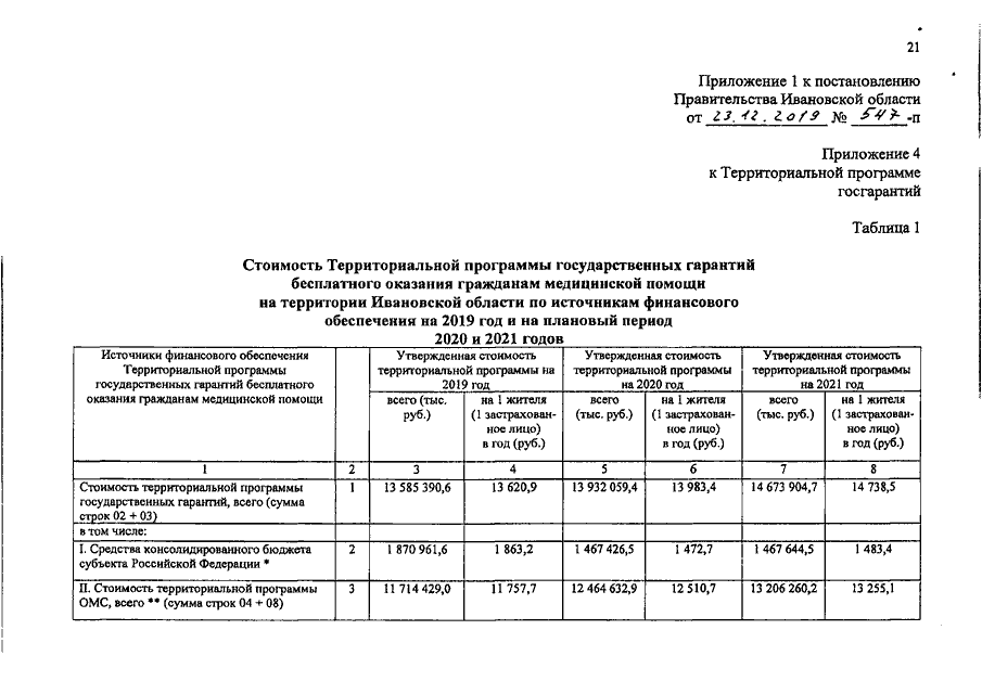 Постановление Правительства Ивановской области от 23.12.2019 N 547-п "О внесении изменений в постановление Правительства Ивановской области от 28.12.2018 N 420-п "Об утверждении Территориальной программы государственных гарантий бесплатного оказания гражданам медицинской помощи на территории Ивановской области на 2019 год и на плановый период 2020 и 2021 годов" (вместе с "Перечнем медицинских организаций, участвующих в предоставлении паллиативной медицинской помощи", "Перечнем медицинских организаций, проводящих профилактические медицинские осмотры, в том числе в рамках диспансеризации")