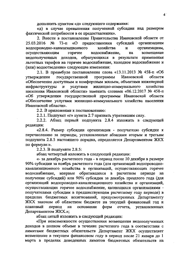 Постановление Правительства Ивановской области от 24.12.2019 N 554-п "О внесении изменений в постановления Правительства Ивановской области от 22.05.2015 N 211-п "О предоставлении субсидий теплоснабжающим организациям на возмещение недополученных доходов от разницы между утвержденными тарифами на тепловую энергию, поставляемую потребителям, и утвержденными льготными тарифами на тепловую энергию, поставляемую населению на нужды отопления жилищного фонда и приготовления горячей воды с использованием внутридомовых инженерных систем многоквартирного дома" и от 25.03.2016 N 73-п "О предоставлении субсидий организациям водопроводно-канализационного хозяйства и организациям, осуществляющим горячее водоснабжение, на возмещение недополученных доходов, образующихся в результате применения льготных тарифов на горячее водоснабжение, холодное водоснабжение и (или) водоотведение"