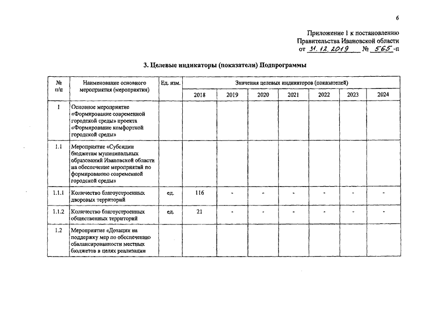 Постановление Правительства Ивановской области от 31.12.2019 N 565-п "О внесении изменений в постановление Правительства Ивановской области от 01.09.2017 N 337-п "Об утверждении государственной программы Ивановской области "Формирование современной городской среды" (вместе с "Адресным перечнем территорий, нуждающихся в благоустройстве и подлежащих благоустройству в рамках поддержки местных инициатив")