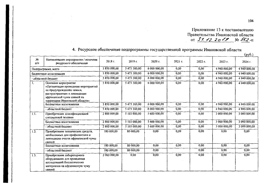 Постановление Правительства Ивановской области от 31.12.2019 N 562-п "О внесении изменений в постановление Правительства Ивановской области от 13.11.2013 N 451-п "Об утверждении государственной программы Ивановской области "Развитие сельского хозяйства и регулирование рынков сельскохозяйственной продукции, сырья и продовольствия Ивановской области" (вместе с "Подпрограммой "Развитие малых форм хозяйствования и сельскохозяйственной потребительской кооперации", "Подпрограммой "Комплексное развитие сельских территорий")