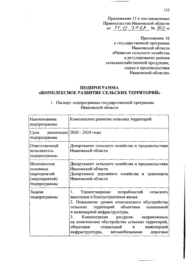 Постановление Правительства Ивановской области от 31.12.2019 N 562-п "О внесении изменений в постановление Правительства Ивановской области от 13.11.2013 N 451-п "Об утверждении государственной программы Ивановской области "Развитие сельского хозяйства и регулирование рынков сельскохозяйственной продукции, сырья и продовольствия Ивановской области" (вместе с "Подпрограммой "Развитие малых форм хозяйствования и сельскохозяйственной потребительской кооперации", "Подпрограммой "Комплексное развитие сельских территорий")