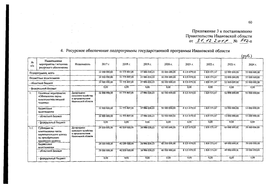 Постановление Правительства Ивановской области от 31.12.2019 N 562-п "О внесении изменений в постановление Правительства Ивановской области от 13.11.2013 N 451-п "Об утверждении государственной программы Ивановской области "Развитие сельского хозяйства и регулирование рынков сельскохозяйственной продукции, сырья и продовольствия Ивановской области" (вместе с "Подпрограммой "Развитие малых форм хозяйствования и сельскохозяйственной потребительской кооперации", "Подпрограммой "Комплексное развитие сельских территорий")