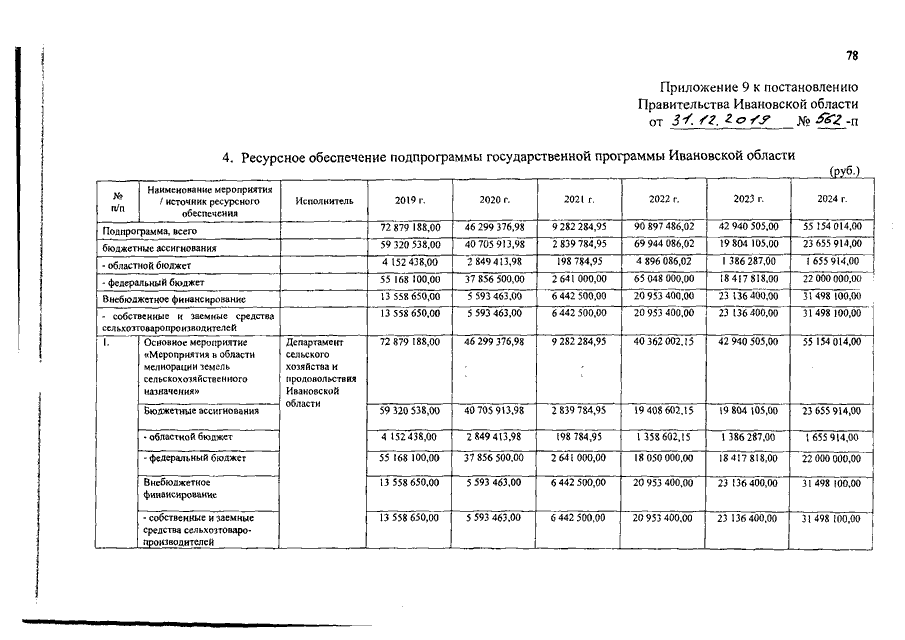 Постановление Правительства Ивановской области от 31.12.2019 N 562-п "О внесении изменений в постановление Правительства Ивановской области от 13.11.2013 N 451-п "Об утверждении государственной программы Ивановской области "Развитие сельского хозяйства и регулирование рынков сельскохозяйственной продукции, сырья и продовольствия Ивановской области" (вместе с "Подпрограммой "Развитие малых форм хозяйствования и сельскохозяйственной потребительской кооперации", "Подпрограммой "Комплексное развитие сельских территорий")