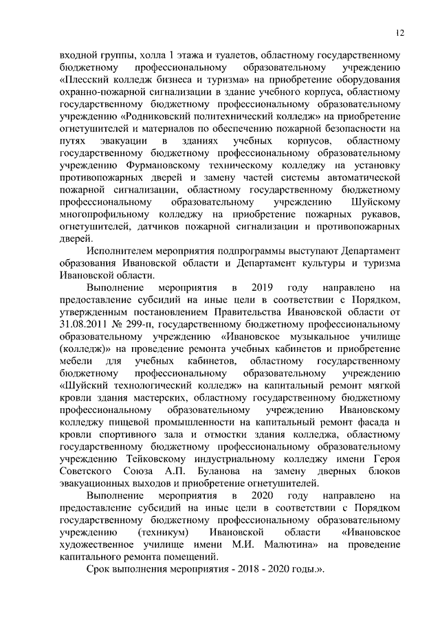 Постановление Правительства Ивановской области от 31.12.2019 N 561-п "О внесении изменений в постановление Правительства Ивановской области от 13.11.2013 N 450-п "Об утверждении государственной программы "Развитие образования Ивановской области" (вместе с "Порядком формирования, предоставления и распределения субсидий бюджетам муниципальных образований Ивановской области на благоустройство зданий государственных и муниципальных общеобразовательных организаций в целях соблюдения требований к воздушно-тепловому режиму, водоснабжению и канализации", "Порядком формирования, предоставления и распределения субсидий бюджетам муниципальных районов и городских округов Ивановской области на создание (обновление) материально-технической базы для реализации основных и дополнительных общеобразовательных программ цифрового и гуманитарного профилей в общеобразовательных организациях, расположенных в сельской местности и малых городах", "Порядком формирования, предоставления и распределения субсидий бюджетам муниципальных районов и городских округов Ивановской области на внедрение целевой модели цифровой образовательной среды в общеобразовательных организациях и профессиональных образовательных организациях", "Порядком формирования, предоставления и распределения субсидий бюджетам муниципальных районов и городских округов Ивановской области на создание и функционирование в Ивановской области центров цифрового образования детей")