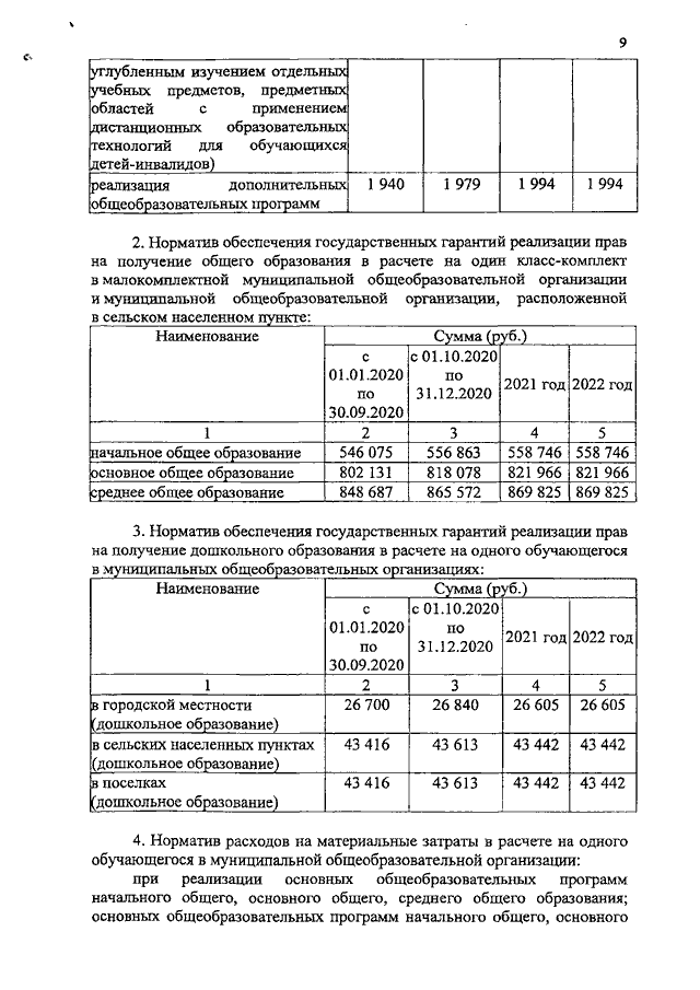 Постановление Правительства Ивановской области от 13.01.2020 N 4-п "О внесении изменений в постановление Правительства Ивановской области от 18.11.2019 N 466-п "Об утверждении нормативов обеспечения государственных гарантий реализации прав на получение общедоступного и бесплатного общего образования, обеспечения дополнительного образования в муниципальных образовательных организациях и возмещения затрат на финансовое обеспечение получения общего образования в частных образовательных организациях на 2020 год и на плановый период 2021 и 2022 годов" (вместе с "Нормативами обеспечения государственных гарантий реализации прав на получение общедоступного и бесплатного дошкольного, начального общего, основного общего, среднего общего образования в муниципальных общеобразовательных организациях, обеспечения дополнительного образования в муниципальных общеобразовательных организациях на 2020 год и на плановый период 2021 и 2022 годов", "Нормативами возмещения затрат на финансовое обеспечение получения дошкольного, начального общего, основного общего, среднего общего образования в частных общеобразовательных организациях, осуществляющих образовательную деятельность по имеющим государственную аккредитацию основным общеобразовательным программам, на 2020 год и на плановый период 2021 и 2022 годов", "Нормативами обеспечения государственных гарантий реализации прав на получение общедоступного и бесплатного дошкольного образования в муниципальных дошкольных образовательных организациях на 2020 год и на плановый период 2021 и 2022 годов", "Нормативами возмещения затрат на финансовое обеспечение получения дошкольного образования в частных дошкольных образовательных организациях на 2020 год и на плановый период 2021 и 2022 годов")