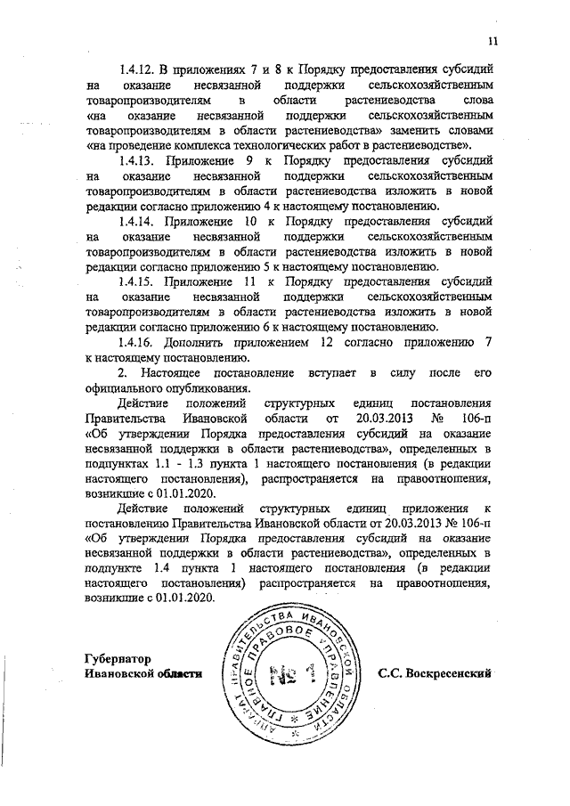 Постановление Правительства Ивановской области от 23.01.2020 N 23-п "О внесении изменений в постановление Правительства Ивановской области от 20.03.2013 N 106-п "Об утверждении Порядка предоставления субсидий на оказание несвязанной поддержки сельскохозяйственным товаропроизводителям в области растениеводства"