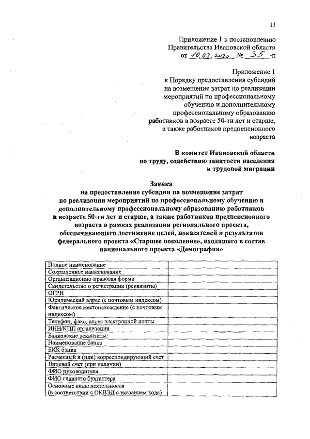 Постановление Правительства Ивановской области от 10.02.2020 N 35-п "О внесении изменений в постановления Правительства Ивановской области от 03.04.2019 N 115-п "Об утверждении Порядка организации и финансирования мероприятий по профессиональному обучению и дополнительному профессиональному образованию лиц предпенсионного возраста", от 03.04.2019 N 120-п "Об утверждении Порядка предоставления субсидий на возмещение затрат по реализации мероприятий по профессиональному обучению и дополнительному профессиональному образованию работников предпенсионного возраста"