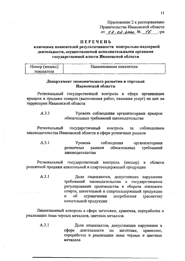 Распоряжение Правительства Ивановской области от 17.02.2020 N 16-рп "Об утверждении Методики оценки результативности и эффективности контрольно-надзорной деятельности, осуществляемой исполнительными органами государственной власти Ивановской области, и Перечня ключевых показателей результативности контрольно-надзорной деятельности, осуществляемой исполнительными органами государственной власти Ивановской области"