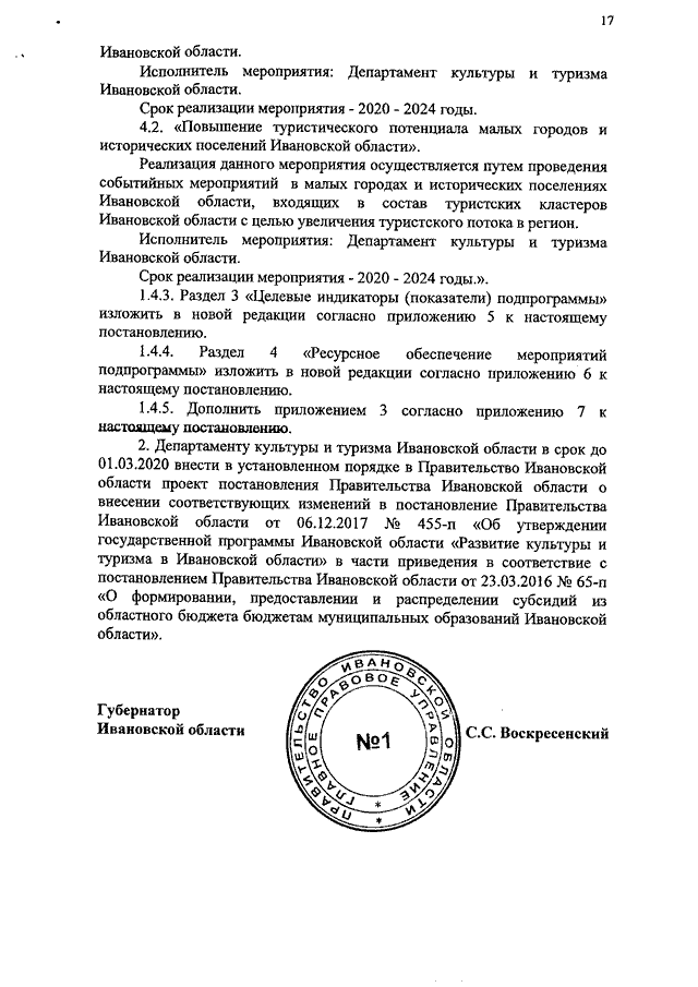 Постановление Правительства Ивановской области от 17.02.2020 N 63-п "О внесении изменений в постановление Правительства Ивановской области от 06.12.2017 N 455-п "Об утверждении государственной программы Ивановской области "Развитие культуры и туризма в Ивановской области" (вместе с "Порядком предоставления и распределения субсидий бюджетам муниципальных образований Ивановской области на софинансирование строительства (реконструкции) объектов обеспечивающей инфраструктуры с длительным сроком окупаемости, входящих в состав инвестиционных проектов по созданию туристических кластеров", "Порядком предоставления и распределения субсидий бюджетам муниципальных образований Ивановской области на обеспечение учреждений культуры специализированным автотранспортом для обслуживания населения, в том числе сельского населения")