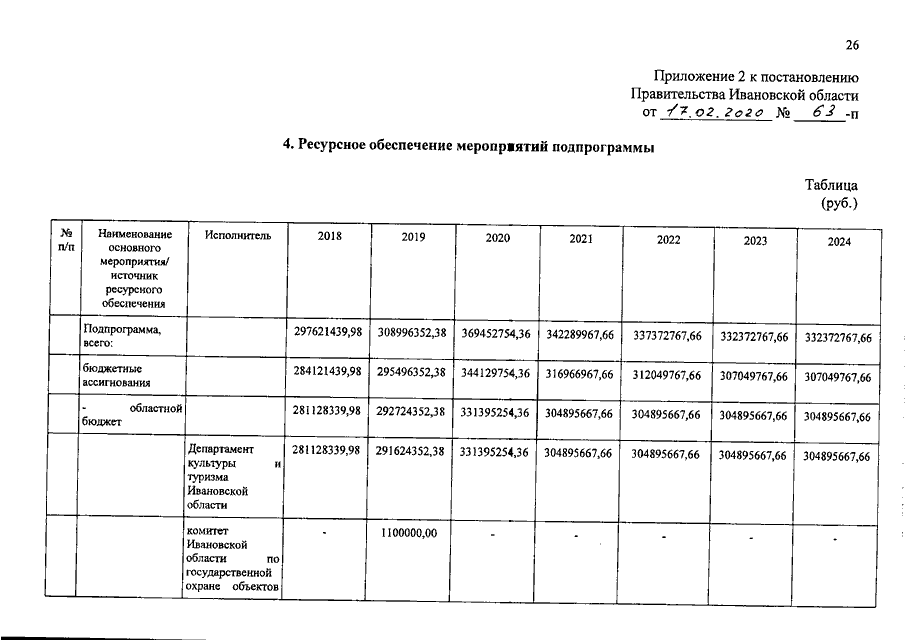Постановление Правительства Ивановской области от 17.02.2020 N 63-п "О внесении изменений в постановление Правительства Ивановской области от 06.12.2017 N 455-п "Об утверждении государственной программы Ивановской области "Развитие культуры и туризма в Ивановской области" (вместе с "Порядком предоставления и распределения субсидий бюджетам муниципальных образований Ивановской области на софинансирование строительства (реконструкции) объектов обеспечивающей инфраструктуры с длительным сроком окупаемости, входящих в состав инвестиционных проектов по созданию туристических кластеров", "Порядком предоставления и распределения субсидий бюджетам муниципальных образований Ивановской области на обеспечение учреждений культуры специализированным автотранспортом для обслуживания населения, в том числе сельского населения")
