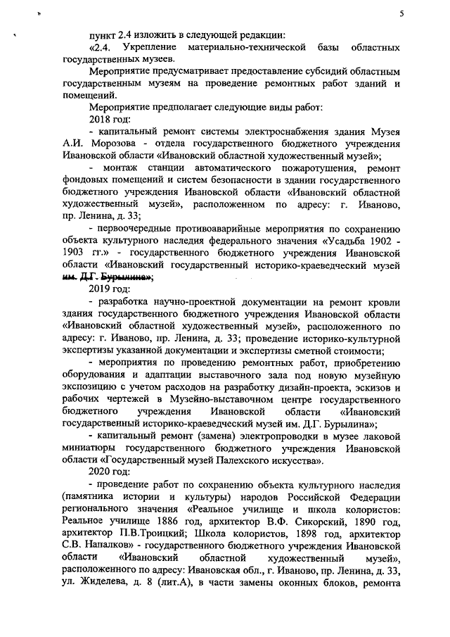 Постановление Правительства Ивановской области от 17.02.2020 N 63-п "О внесении изменений в постановление Правительства Ивановской области от 06.12.2017 N 455-п "Об утверждении государственной программы Ивановской области "Развитие культуры и туризма в Ивановской области" (вместе с "Порядком предоставления и распределения субсидий бюджетам муниципальных образований Ивановской области на софинансирование строительства (реконструкции) объектов обеспечивающей инфраструктуры с длительным сроком окупаемости, входящих в состав инвестиционных проектов по созданию туристических кластеров", "Порядком предоставления и распределения субсидий бюджетам муниципальных образований Ивановской области на обеспечение учреждений культуры специализированным автотранспортом для обслуживания населения, в том числе сельского населения")