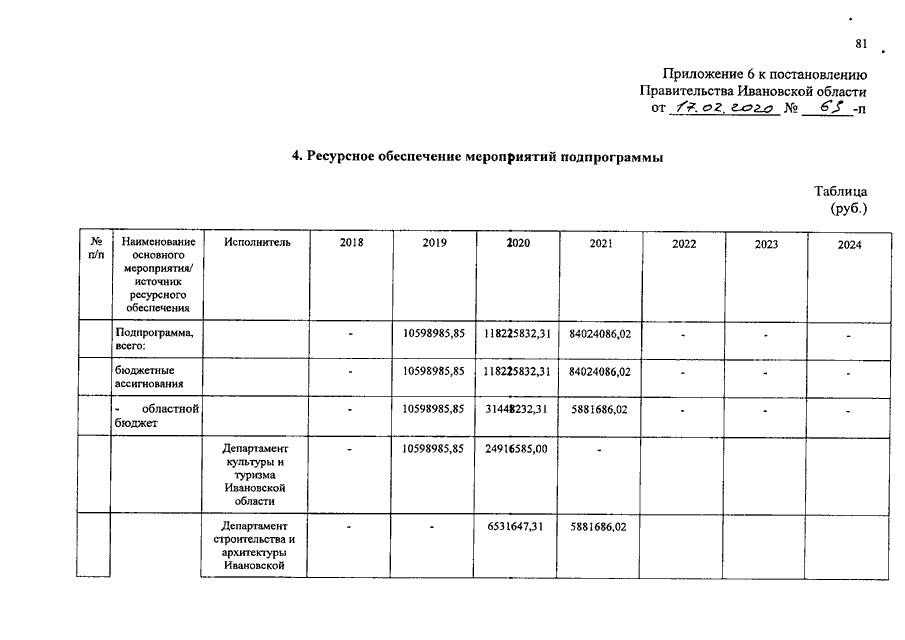 Постановление Правительства Ивановской области от 17.02.2020 N 63-п "О внесении изменений в постановление Правительства Ивановской области от 06.12.2017 N 455-п "Об утверждении государственной программы Ивановской области "Развитие культуры и туризма в Ивановской области" (вместе с "Порядком предоставления и распределения субсидий бюджетам муниципальных образований Ивановской области на софинансирование строительства (реконструкции) объектов обеспечивающей инфраструктуры с длительным сроком окупаемости, входящих в состав инвестиционных проектов по созданию туристических кластеров", "Порядком предоставления и распределения субсидий бюджетам муниципальных образований Ивановской области на обеспечение учреждений культуры специализированным автотранспортом для обслуживания населения, в том числе сельского населения")
