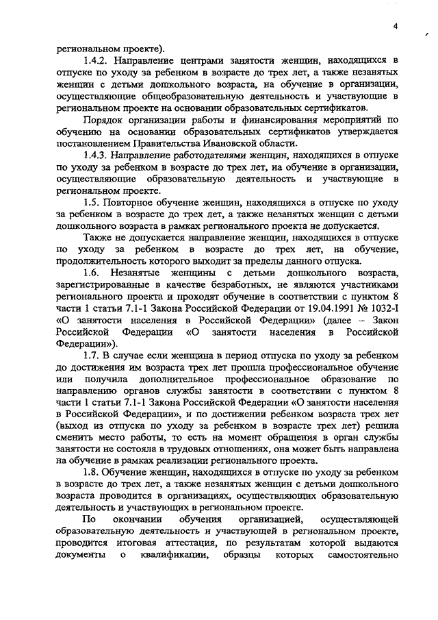 Постановление Правительства Ивановской области от 28.02.2020 N 80-п "Об утверждении Порядка организации и финансирования мероприятий по переобучению и повышению квалификации женщин в период отпуска по уходу за ребенком в возрасте до трех лет, а также женщин, имеющих детей дошкольного возраста, не состоящих в трудовых отношениях и обратившихся в органы службы занятости"